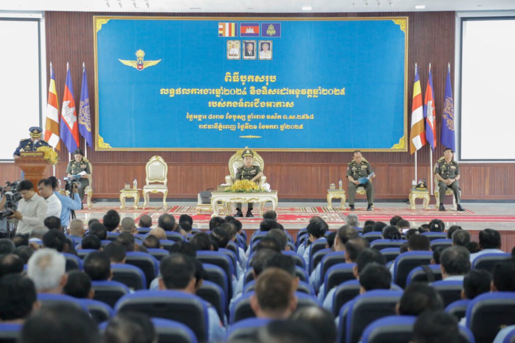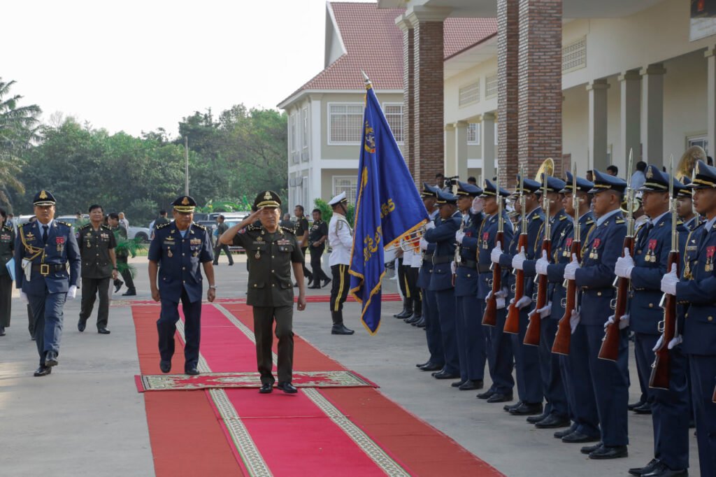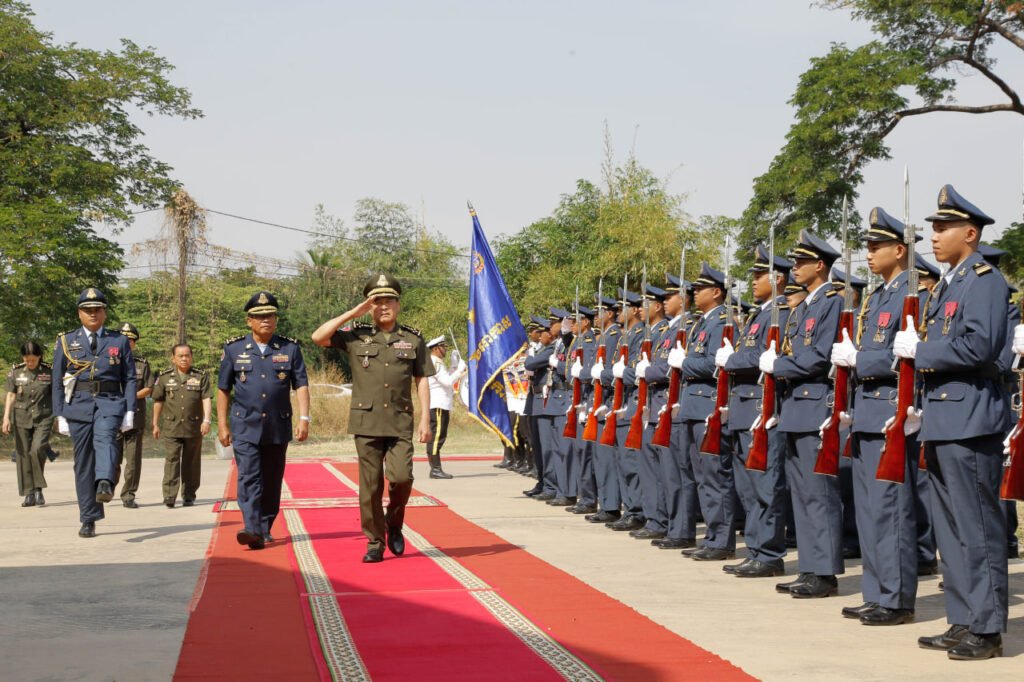 កងកិត្តិយស-ត្រែទ័ព បានវន្ទនៈកិច្ចក្នុងពិធីបូកសរុបលទ្ធផលការងារឆ្នាំ២០២៤ និងទិសដៅអនុវត្តឆ្នាំ២០២៥ របស់កងទ័ពជើងអាកាស ក្រោមអតិបតីភាព ឯកឧត្ដម នាយឧត្តមសេនីយ៍ វង្ស ពិសេន អគ្គមេបញ្ជាការនៃកងយោធពលខេមរ:ភូមិន្ទ៕