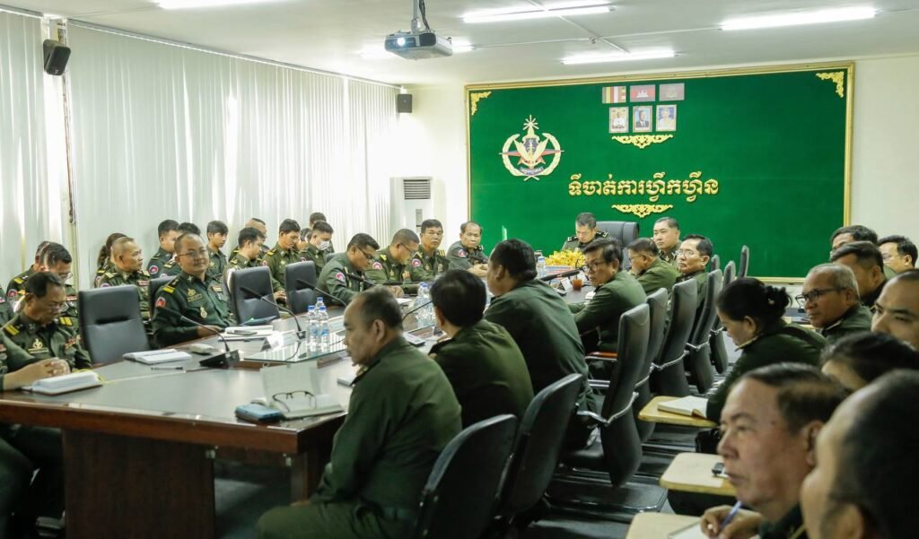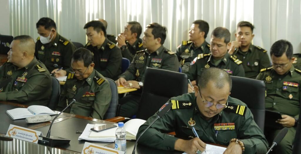 (ភ្នំពេញ)៖ ឯកឧត្តម ឧត្តមសេនីយ៍ទោ ប៉ែន សុក្រិត្យវិទ្យា នាយកទីចាត់ការហ្វឹកហ្វឺន អគ្គបញ្ជាការ បានអញ្ជើញដឹកនាំកិច្ចប្រជុំបូកសរុបរបាយការណ៍ប្រចាំខែមករា និងដាក់ទិសដៅសម្រាប់ខែកុម្ភ: ឆ្នាំ២០២៥ នាព្រឹកថ្ងៃទី០៥ ខែកុម្ភៈ ឆ្នាំ២០២៥ នៅសាលប្រជុំ ទីចាត់ការហ្វឹកហ្វឺន៕