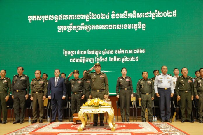 កងកិតិ្តយស-ត្រែទ័ព បានវន្ទនៈកិច្ចក្នុងពិធីបូកសរុបលទ្ធផលការងារឆ្នាំ២០២៤ និងលើកទិសដៅឆ្នាំ២០២៥ ក្រុមប្រឹក្សាកីឡាកងយោធពលខេមរភូមិន្ទ ក្រោមអតិបតីភាព ឯកឧត្តម នាយឧត្តមសេនីយ៍ ទៀ សីហា ឧបនាយករដ្ឋមន្ត្រី រដ្ឋមន្ត្រីក្រសួងការពារជាតិ៕