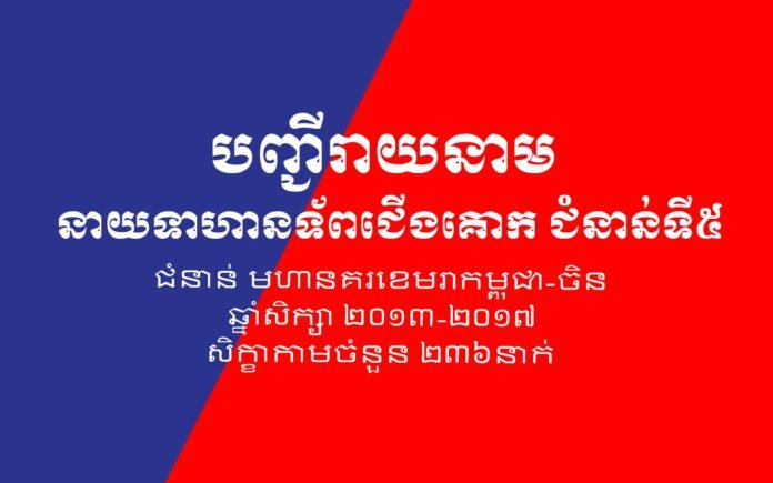 | ១៧ | នាយចំណង់ | កេង | ពិសាល | ១៦៣៨០៩ | ប្រុស | នាយទាហានទ័ពជើងគោក | ||
