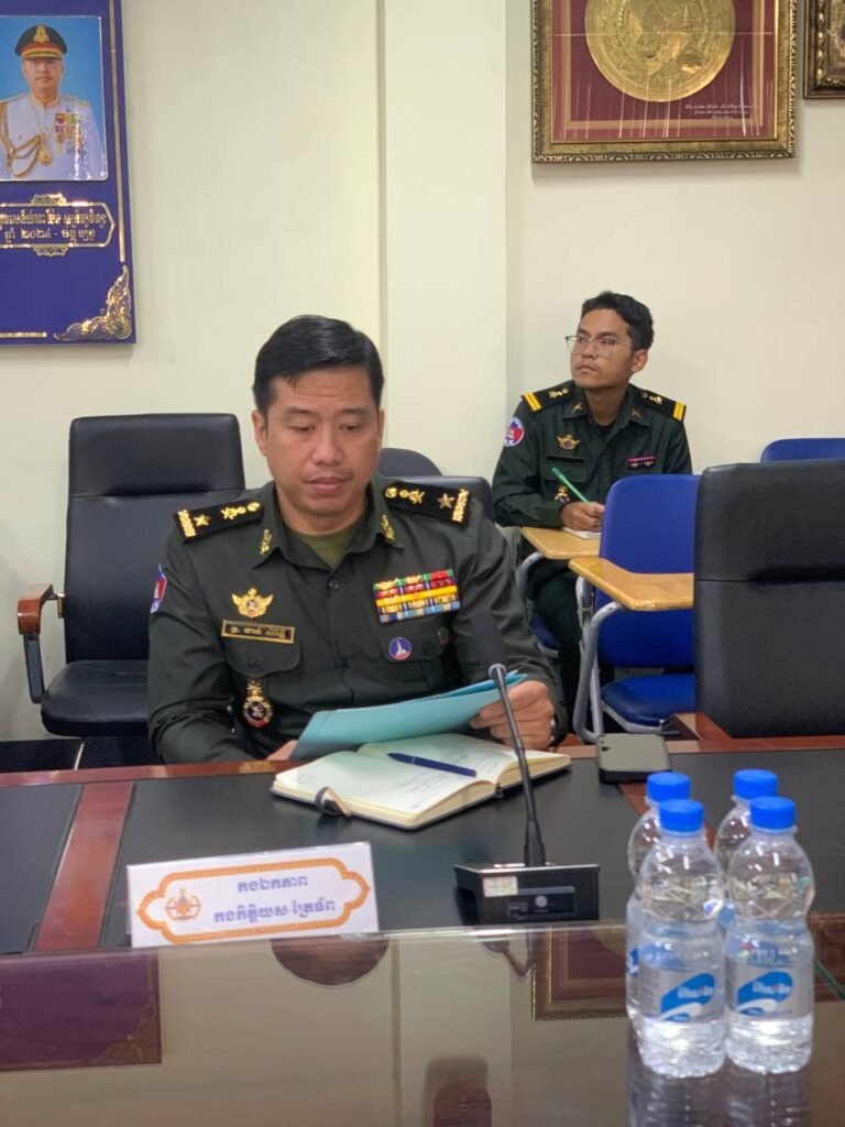 ឯកឧត្តម ឧត្តមសេនីយ៍ទោ នាយកទីចាត់ការហ្វឹកហ្វឺន អញ្ជើញជាអធិបតីក្នុងកិច្ចប្រជុំចង្អៀតពិភាក្សាពាក់ព័ន្ធកម្មវិធីបើកវគ្គហ្វឹកហ្វឺនភាពជាដៃគូត្រីភាគីអង្គការសហប្រជាជាតិ (UN TPP) ឆ្នាំ២០២៤ នៅសាលប្រជុំទីចាត់ការហ្វឹកហ្វឺន។